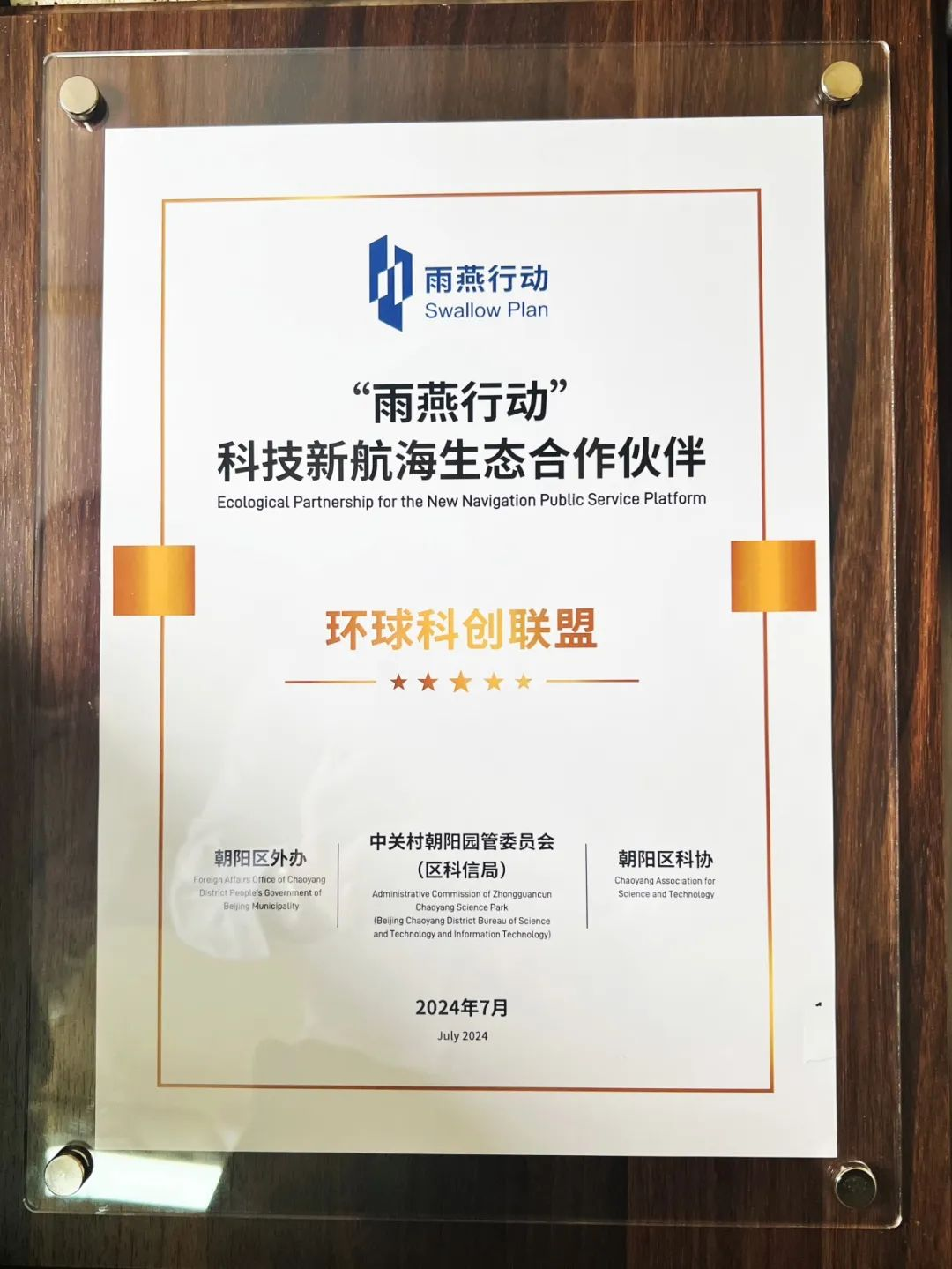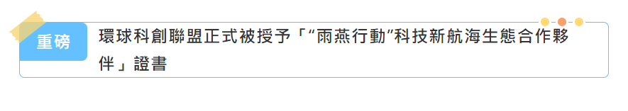 環球科創聯盟正式被授予「“雨燕行動”科技新航海生態合作夥伴」證書!