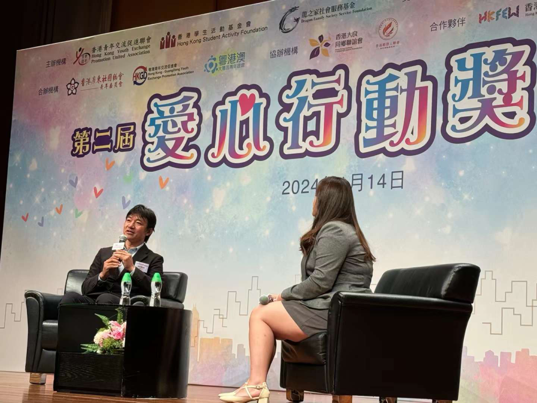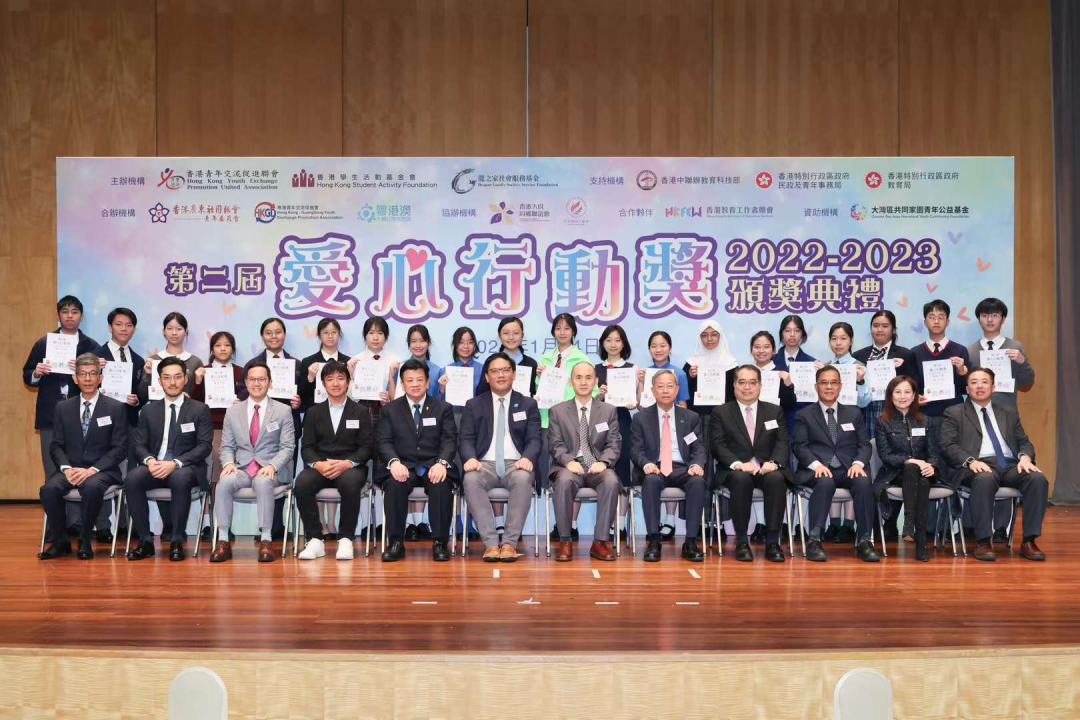 粵港澳大灣區青年總會主席吳學明擔任頒獎嘉賓,頒發「愛心行動學生大使」獎項。他恭喜一眾得獎的學生並表揚了他們的成就,指出每位獲獎的愛心行動學生大使都是義務工作的典範,他們以行動證明了青少年對社會的正能量與承擔。他表示未來會繼續與青年同行,推動青年以更積極的姿態參與義務工作,為建設溫暖的社會盡心盡力。