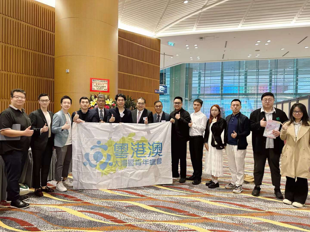 ↑粵港澳大灣區青年總會擔任活動合辦機構,總會主席吳學明(左六)與一眾核心成員出席活動。
