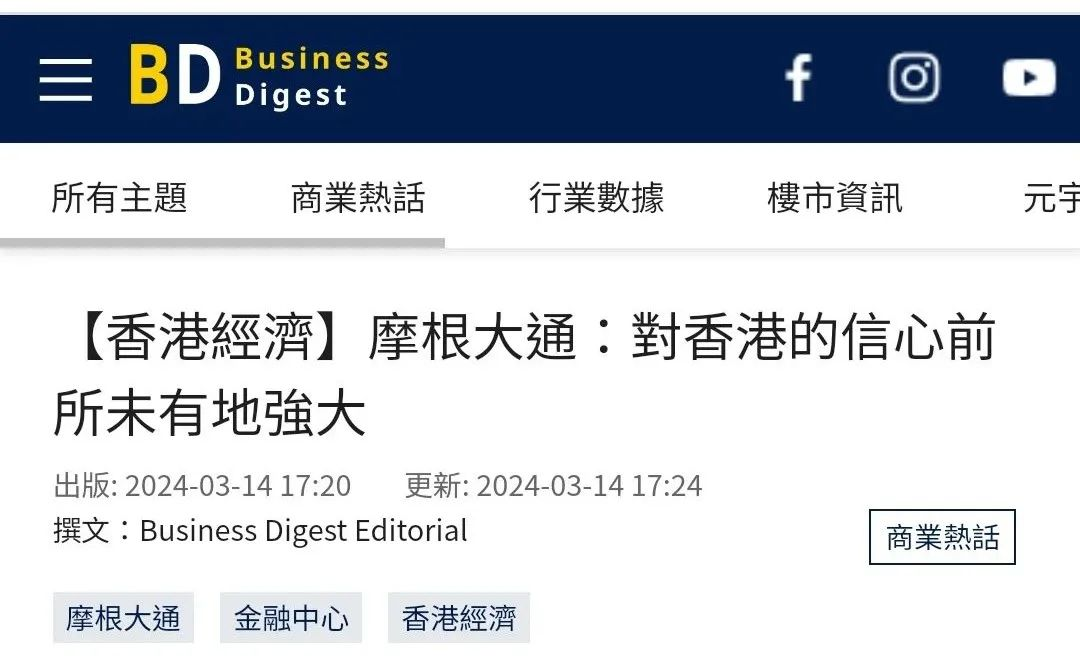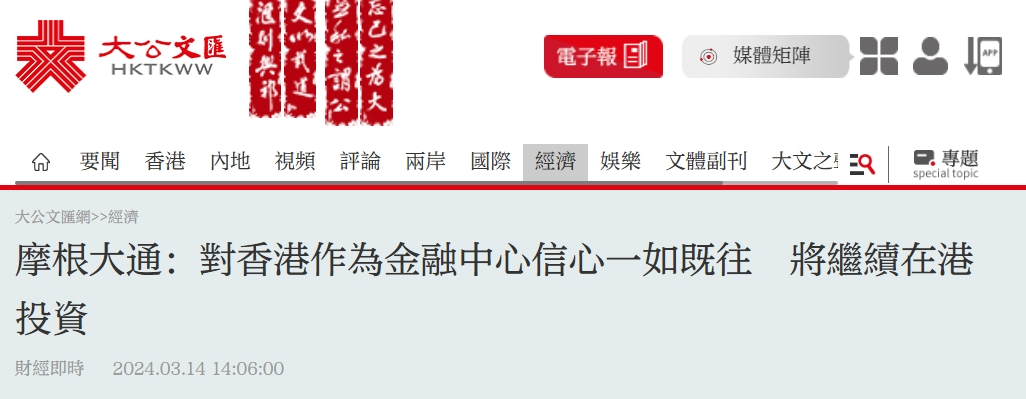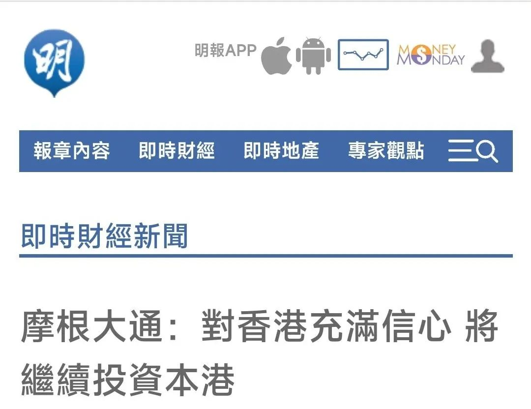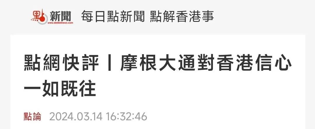 9、明報https://finance.mingpao.com/fin/instantf/20240314/1710411507547/%E6%91%A9%E6%A0%B9%E5%A4%A7%E9%80%9A-%E5%B0%8D%E9%A6%99%E6%B8%AF%E5%85%85%E6%BB%BF%E4%BF%A1%E5%BF%83-%E5%B0%87%E7%B9%BC%E7%BA%8C%E6%8A%95%E8%B3%87%E6%9C%AC%E6%B8%AF